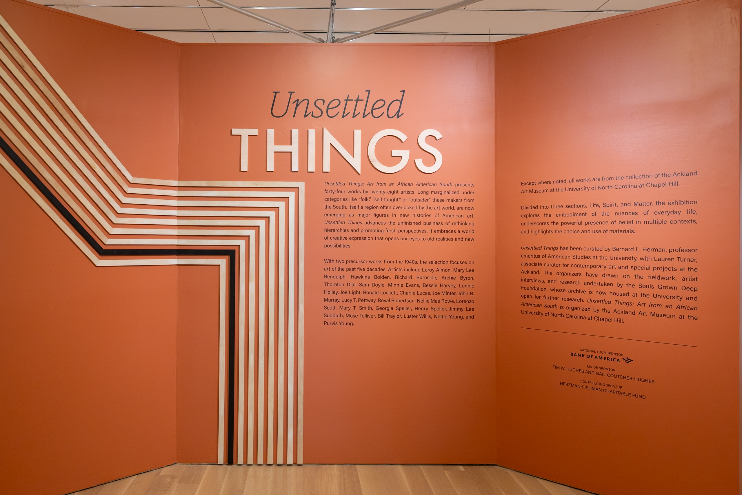 Unsettled Things has been curated by Bernard L. Herman, professor emeritus of American Studies at the University, with Lauren Turner, associate curator for contemporary art and special projects at the Ackland. The organizers have drawn on the fieldwork, artist interviews, and research undertaken by the Souls Grown Deep Foundation, whose archive is now housed at the University and open for further research.
